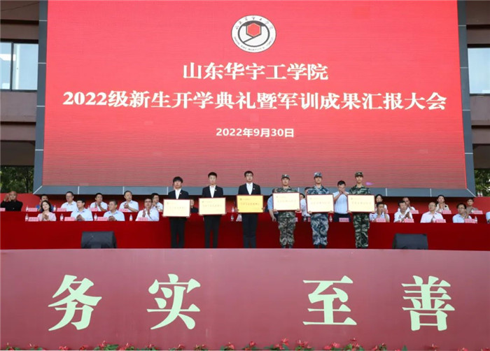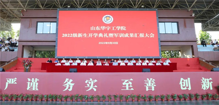 9月30日下午,我校2022级新生开学典礼暨军训成果汇报大会在学校体育场举行。学校党委书记张洪英,执行校长梁玉国,副校长夏传波、王春光、刘润华,校长助理魏东坡、侯建昌出席大会,各部门(单位)主要负责人、2022级全体新生参加大会。大会由党委副书记、副校长高挺进主持。