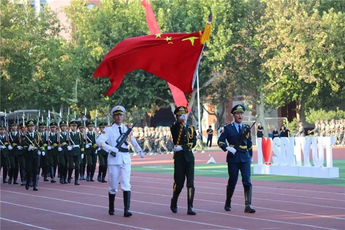 2022级新生开学典礼暨军训成果汇报大会在师生齐唱《没有共产党就没有新中国》的歌声中圆满落下帷幕。