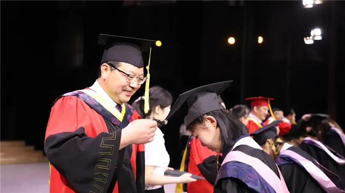 学位评定委员会副主任刘润华为毕业生代表拨正流苏
