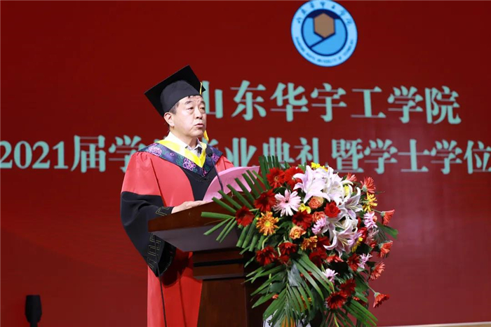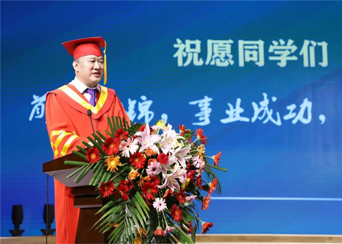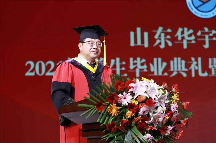 学校执行校长梁玉国致辞。他代表全体师生员工,对圆满完成学业的2021届毕业生表示热烈的祝贺!对老师们的悉心指导和家长们的无私支持表示衷心的感谢!