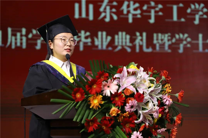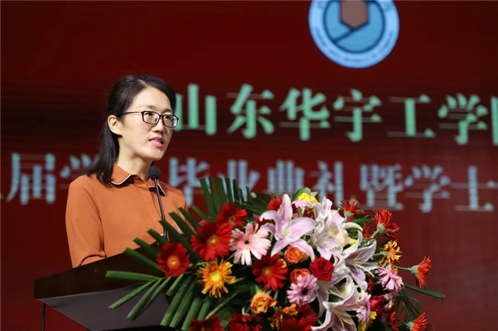 教师代表管程程老师发言。她代表全体教职工向毕业生表示祝贺,对他们提出殷切希望,并祝福广大毕业生前程似锦、梦想成真。