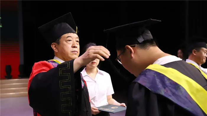 学位评定委员会委员魏东坡为毕业生代表拨正流苏