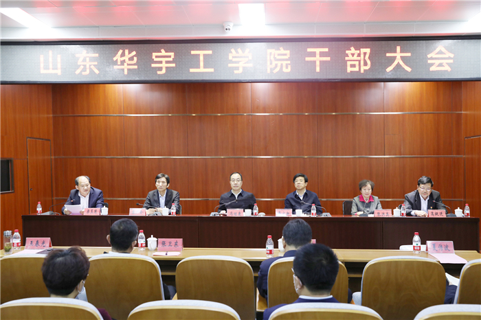 4月20日下午,我校在学术报告厅召开干部大会。省委教育工委副书记,省教育厅党组副书记、副厅长(正厅级)冯继康,德州市委常委、宣传部部长、市委教育工委书记景文新,省委教育工委高校干部处处长袁广全,市委教育工委常务副书记、市教体局局长张书鹏出席会议。市委教育工委有关领导,学校中层以上干部,教授代表和民主党派代表参加会议。学校党委副书记、副校长高挺进主持会议。