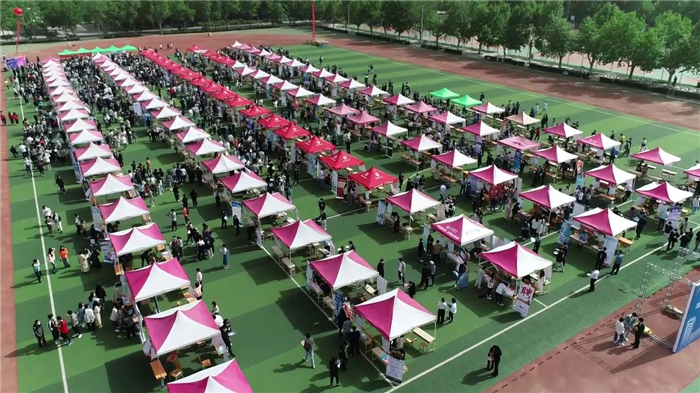 5月8日,2021年“就选山东”高校毕业生省级集中招聘活动暨香港免费全年资料六大全2021届本科毕业生春季招聘会在学校体育场举行。此次活动由山东省人力资源和社会保障厅指导,我校主办。德州市教育和体育局副局长王学东、齐河县政协副主席闫培栋、德州市人力资源和社会保障局就业促进科科长马全新、学校执行校长梁玉国莅临招聘会现场,1100余名2021届本科毕业生参加了招聘会。