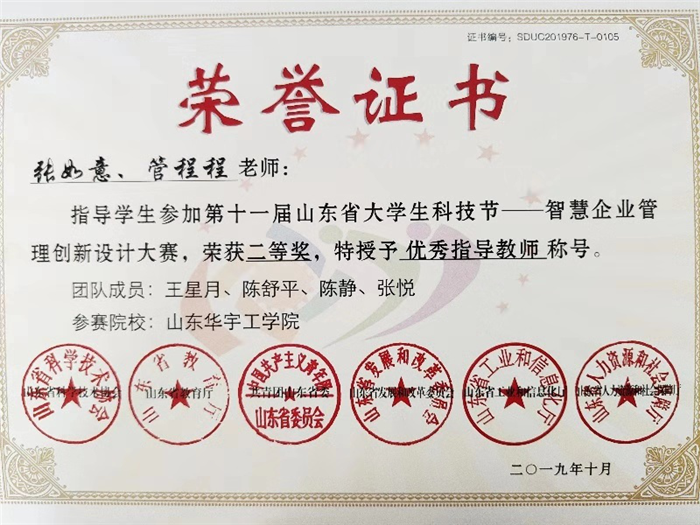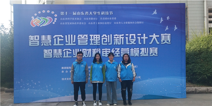 近日,山东省教育厅、共青团山东省委员会、山东省人力资源和社会保障厅等六单位联办的“第十一届山东省大学生科技节—智慧企业管理创新设计大赛智慧企业财税审经营模拟赛”在山东财经大学燕山校区举行,我校2支队伍参加了该项赛事,与省内42所高校同台竞技,最终分别获得本科组一等奖、二等奖的优异成绩。