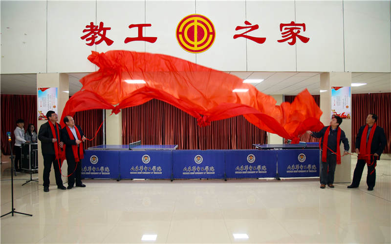 在热烈的掌声中,礼花齐鸣,学校执行校长梁玉国,党委副书记、副校长高挺进,副校长杨义、杜光荣共同为“教工之家”揭牌。仪式结束后,现场充满一片愉快祥和的氛围,与会各位领导和教职工代表,分别参观了教职工活动中心各项活动场所,并进行了体验。