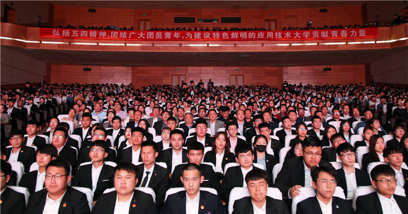 近日,我校“青春心向党·建功新时代”纪念五四运动100周年暨五四表彰颁奖典礼在国际文化中心隆重举行。学校党委书记徐传光,执行校长梁玉国,副校长夏传波,副校长刘润华,党委副书记、副校长高挺进,副校长杨义、杜光荣,校长助理魏东坡、贺红岩、侯建昌,以及各职能处室、各教学单位负责人,业余党校学员、新入团团员与全校1300余名师生代表共同观看了颁奖典礼。