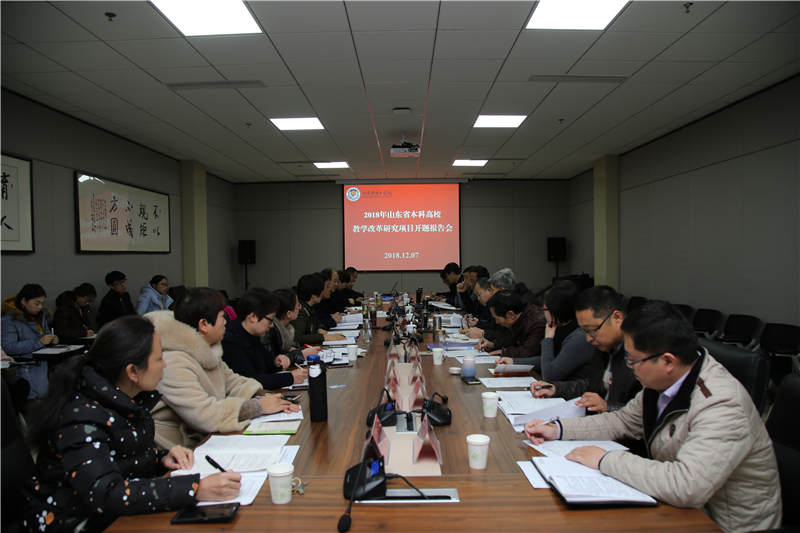 12月7日上午,我校召开2018年度山东省本科教改项目开题报告会。由教育部教学评估专家王汉忠教授,中国石油大学(华东)刘润华教授、门福殿教授等5人组成的专家组,对我校本年度获批立项的6项教改项目进行开题评议。学校执行校长梁玉国,各项目负责人、项目组主要成员和科研处相关人员参加会议。会议由校长助理魏东坡主持。