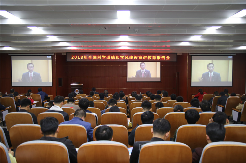 10月15日下午,我校统一组织收看2018年全国科学道德和学风建设宣讲教育报告会。学校领导、部分教学单位负责人等190余名师生代表在学术报告厅集中观看了此次报告会,各教学单位组织其余师生自行观看同步直播。