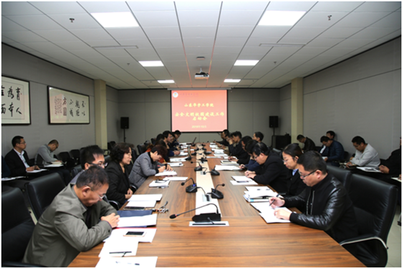 高书记从贯彻落实上级文件精神、学校自身发展需要等方面,强调了争创“山东省平安校园示范学校”和“山东省文明校园”的重要意义。他指出,做好安全文明校园建设工作要树立“三个意识”:一是全局意识,全校上下树立一盘棋的思想,统筹协调,相互配合,形成工作合力。二是树立担当意识,各部门、单位要切实履职尽责,主动性、创造性地开展各项工作。三是树立精品意识,争取将安全文明校园建设的各项活动打造成精品。