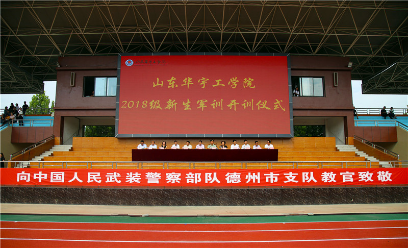 8月28日上午,我校2018级新生军训开训仪式在学校田径运动场隆重举行。中国人民武装警察部队德州支队执勤一大队大队长周鹏,学校党委副书记、副校长高挺进以及各二级学院主要负责同志出席开训仪式并在主席台就坐。开训仪式由学生工作处处长侯建昌主持。