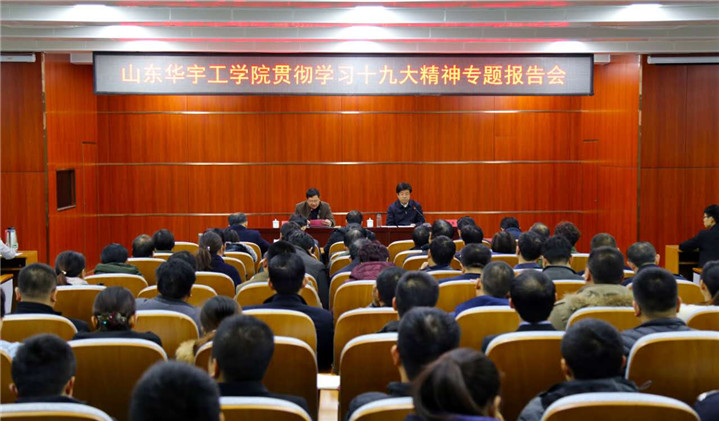 11月30日下午,德州市委常委、宣传部长景文新同志来到我校宣讲党的十九大精神,与师生交流学习体会。校领导,主任助理及以上干部,各党支部书记,各团总支书记,2017年党员发展对象,辅导员代表,学生处党支部入党积极分子参加了报告会,学校党委副书记、副校长高挺进主持会议。