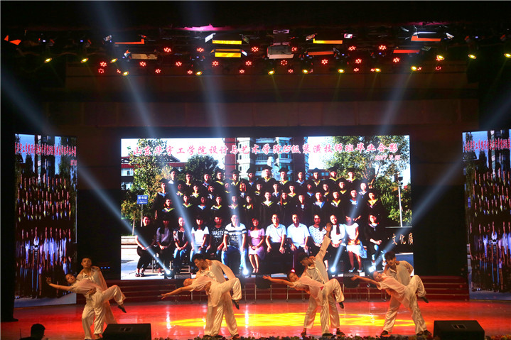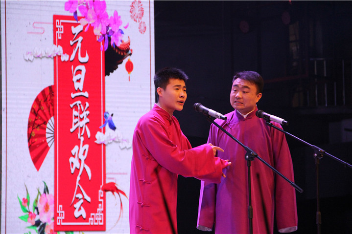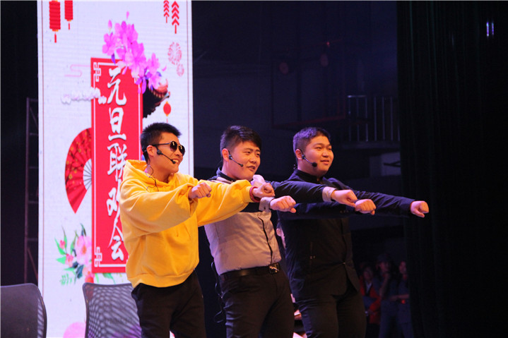 学校领导、老师通过视频现场为全校师生送上了节日的祝福。幽默诙谐的相声《论捧逗》和小品《年代秀》笑料不断,引得观众掌声与笑声此起彼伏,展现了我校学生多才多艺的一面;师生深情演唱的歌曲《春暖花开》《相亲相爱》,深情唱出了师生对学校的深情、感恩与祝福;诗音画《2017,我为华宇报道》师生同台,以独特的形式回顾了我校2017年的发展及取得的成绩,并共同展望美好的2018年;歌伴舞《感到幸福你就拍拍手》描写了我校2017年教室、宿舍、实验室等基础设施的发展变化,学生用歌声向我们展示他们的幸福感;我校07级毕业生邢著龙带来的舞蹈剧《一壶老酒》 、大型群舞《保卫黄河》 、拉丁舞表演、《影子舞》、京剧《智斗》 更是一次又一次将晚会推向高潮。最后,联欢会在经济管理学院选送的大合唱《走向复兴》的歌声中圆满落幕,为整场晚会划上一个完美的句号。伴随着欢快的音乐,校领导老师与全体演员合影留念。
