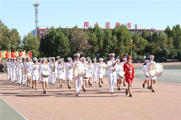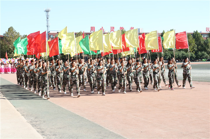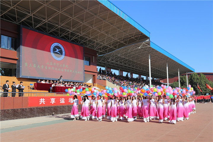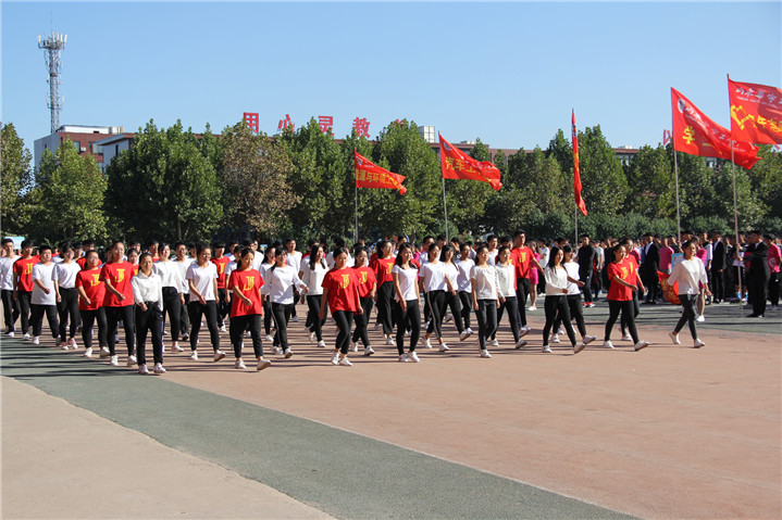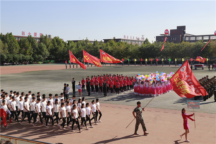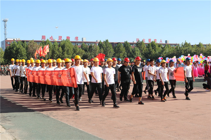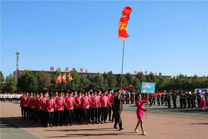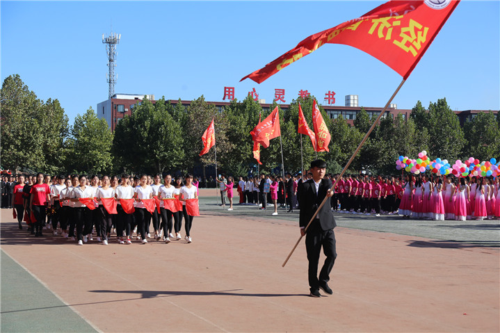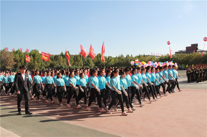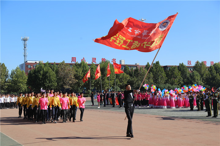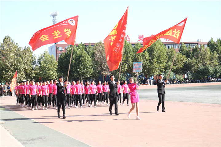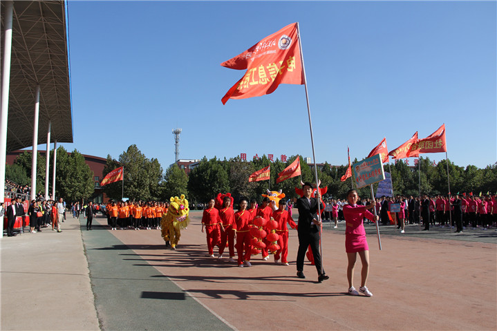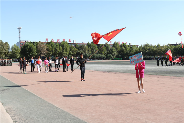 开幕式上举行了庄严的入场仪式。伴随着铿锵有力的运动员进行曲,国旗方队、红旗方队、花束方队、彩球方队、裁判员方队、志愿者方队、9个二级学院运动员方队和教职工方队高呼着嘹亮的口号,迈着矫健自信的步伐,依次进入田径场接受主席台领导和看台观众的检阅。各二级学院方队结合本专业,身着特色服装,以不同造型全方位、多层次进行展示,彰显了各学院专业特色文化,积极推进我校“一院一品牌”的专业特色和文化特色活动建设。