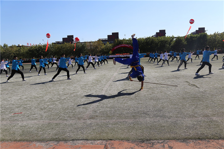 运动员、裁判员退场后,精彩的团体操表演开始。踏鼓欢歌、龙飞旗舞,放飞梦想,三个篇章无缝连接,气势恢宏、别开生面,充分体现了莘莘学子的青春与活力,不断变换的队形,将“华宇”、“中国梦”、“十九大”等主题元素演绎的淋漓尽致,令现场观众耳目一新,激情满怀。