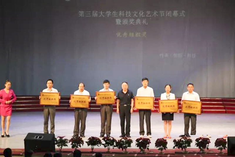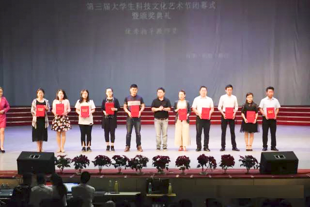 闭幕式由文艺演出和颁奖典礼两部分组成,二者交替进行,完美结合。一支支舞蹈,一首首歌曲,一段段朗诵,一幅幅丹青给舞台大增光彩,给在场观众留下了深刻印象。本届科技文化艺术节设有学生团队特殊贡献奖、教职工篮球赛团队奖、优秀指导教师奖、品牌活动奖、优秀组织奖五大类,颁发奖项60余项。