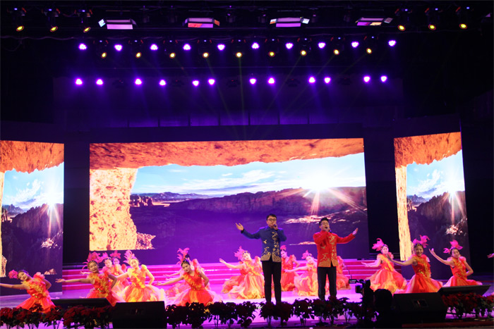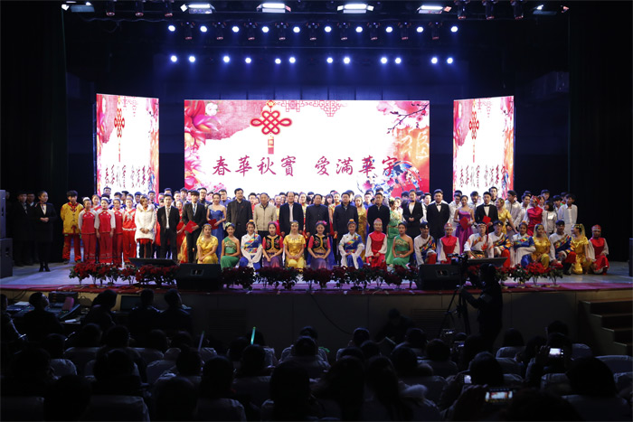 12月27日14时30分,我校 “春华秋实,爱满华宇” 2017年元旦联欢会在国际文化中心隆重举行,学校常务副校长梁玉国,副校长夏传波、张文圣、高挺进、杨义,校长助理魏东坡以及各教学单位、各职能处室负责人出席联欢会并与全校1400余名师生代表共同观看了联欢会。