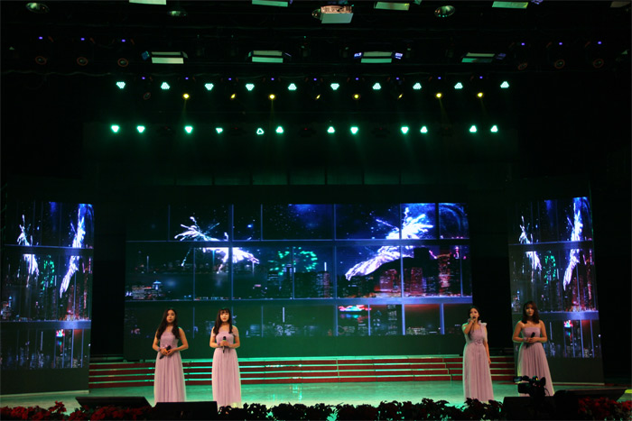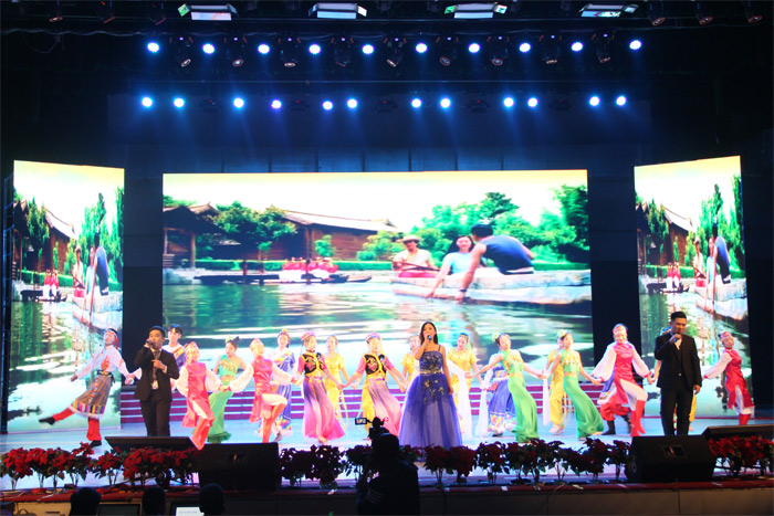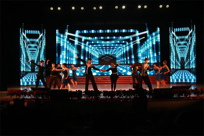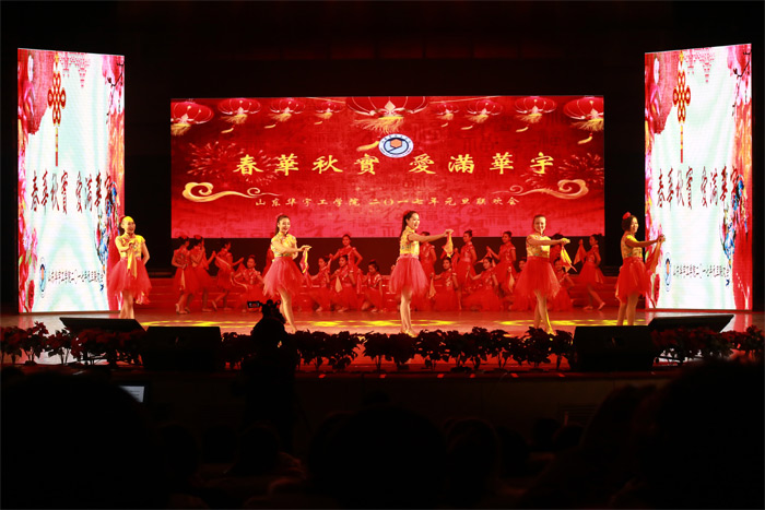 流光溢彩,鼓乐齐鸣,欢歌笑语,辞旧迎新,伴随着充满节日气息的序曲,开场舞《春回大地 盛世华宇》正式拉开了联欢会序幕。歌曲、舞蹈、相声、小品、音乐情景剧等各种类型节目轮番上演,将现场气氛一次次推向高潮,为现场观众带来了一场精神上和视觉上的盛宴。幽默诙谐的相声《打灯谜》和小品《超级大学生》笑料不断,引得观众掌声与笑声此起彼伏,展现了我校学生多才多艺的一面;学生深情演唱的歌曲《雨花石》,让全体师生感受到了学生对老师、对学校的深情、感恩与祝福;音乐快板《我为华宇唱赞歌》师生同台,以独特的形式回顾了我校2016年的发展及取得的成绩,并共同展望美好的2017年;配乐朗诵《梦开始的地方》描写了我校师生在华宇的成长之路;民族舞蹈串烧、拉丁舞表演以及我校07级毕业生邢著龙带来的创意街舞《对你爱不完》更是一次又一次将晚会推向高潮;音乐情景剧《好久不见》,通过歌舞与剧情的结合,展现了毕业生从校园走向工作岗位的变化,并配有我校优秀毕业生的工作照片、毕业照以及毕业生录制的对母校祝福的视频,亦温暖亦感动。最后,联欢会在《欢聚一堂》的歌声中圆满落幕。