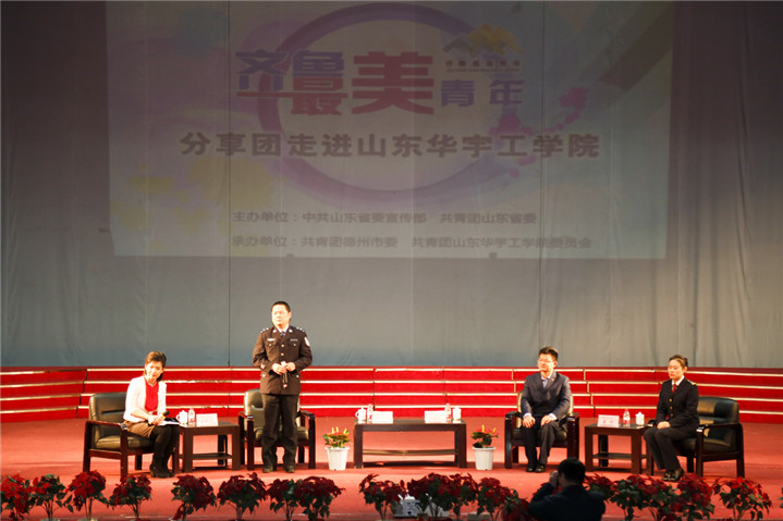 11月8日,“齐鲁最美青年”分享团走基层活动在我校国际文化中心举办分享会。滨州市公安局刑侦支队一大队大队长张永生、中铁十四局集团穗莞深项目部总工程师李树敬、济南市公交总公司六分公司一队驾驶员董丹等3名青年榜样来到现场,讲述青春故事,分享人生感悟,并与青年师生开展互动交流。团省委宣传部副部长栾丽萍、团市委副书记张方瑞、我校学生工作处处长侯建昌出席分享会。