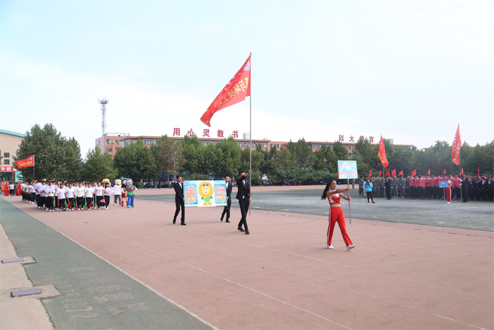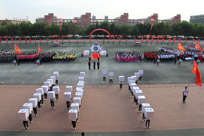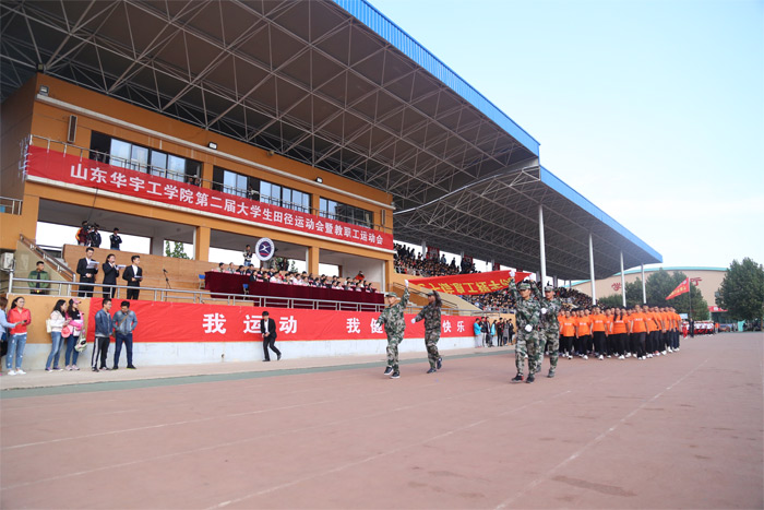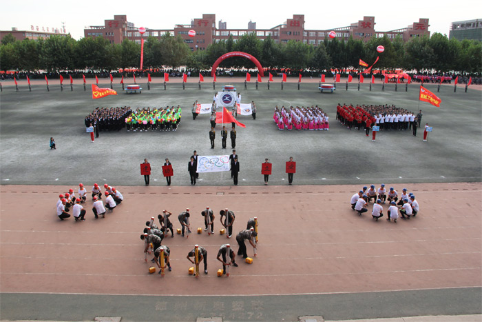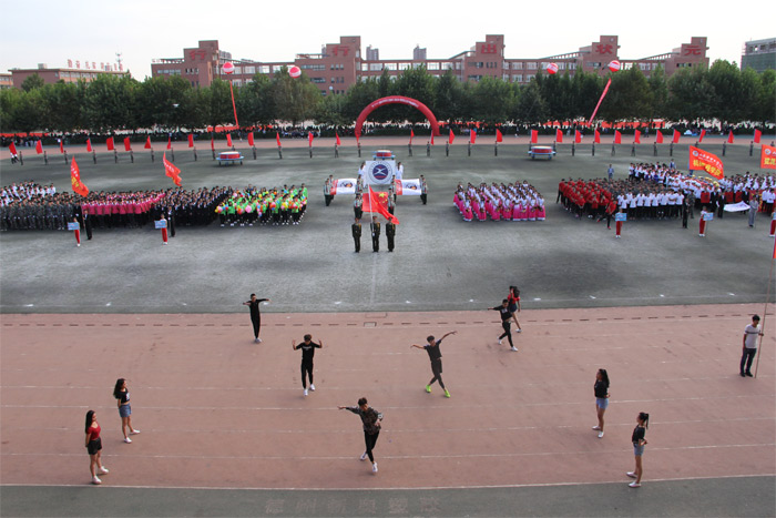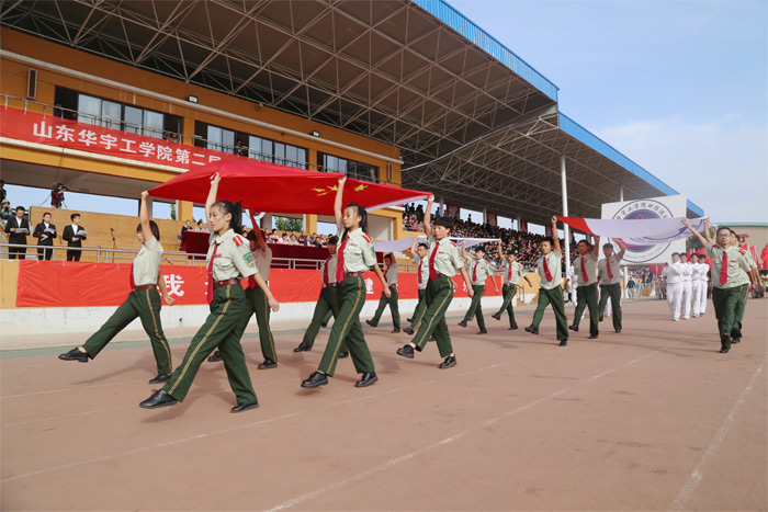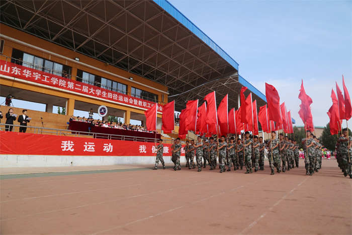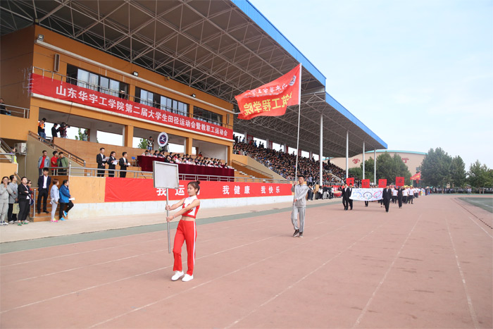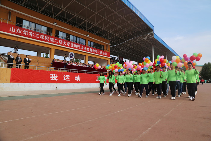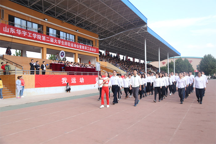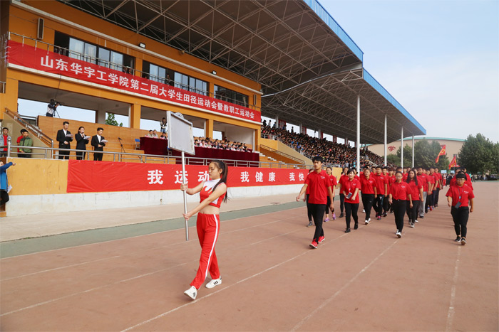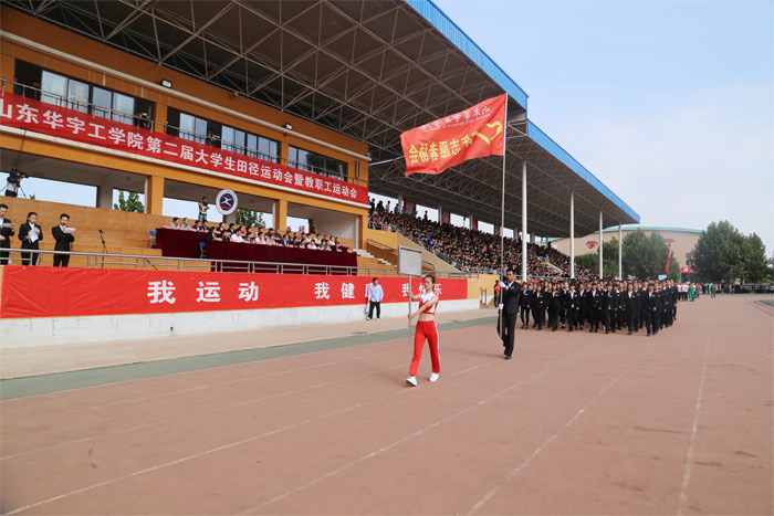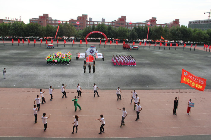 开幕式上举行了庄严的入场仪式。伴随着铿锵有力的运动员进行曲,国旗方队、红旗方队、花束方队、彩球方队、裁判员方队、志愿者方队、9个二级学院运动员方队、1个教职工方队高呼着嘹亮的口号,迈着矫健自信的步伐,依次进入田径场接受主席台领导和看台观众的检阅。期间,各二级学院运动员表演方队表演了各具特色的造型和节目,机械工程学院武舞共融的中国传统武术瑰宝太极展示;电气工程学院巨大旗帜伴随充满电的炫舞青春啦啦操表演;建筑工程学院挤满师生手印的奥运五环展示以及各色安全帽的建筑安全知识普及;能源与环境工程学院形象的十环环境标志展示以及旗子拼字;汽车工程学院的“华宇号”汽车展示;经济管理学院动感十足的体育爵士舞蹈表演;设计与艺术学院学生手工绘制的奥运项目标示牌展示以及锋芒毕露的击剑表演;电子信息工程学院动感魔幻的键盘格表演;五年制高职部传统民俗脸谱和现代舞交融的“双创”表演等精彩表演让现场观众大饱眼福,赢得了阵阵掌声和喝彩声。