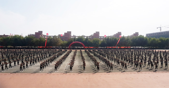 随后大家一起欣赏了学校大型锣鼓和团体操表演。锣鼓喧天、龙影矫健,气势恢宏、别开生面的千人体操表演,充分体现了莘莘学子的青春与活力,全面阐释了本届运动会“我运动,我健康,我快乐”的主题,紧接着九个同心圆、奥运五环、四个动态方阵、山东华宇首字母S、D、H、Y的拼成等队形变换,令现场观众耳目一新,激情满怀。