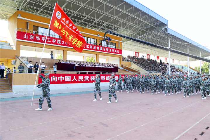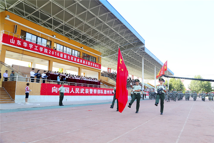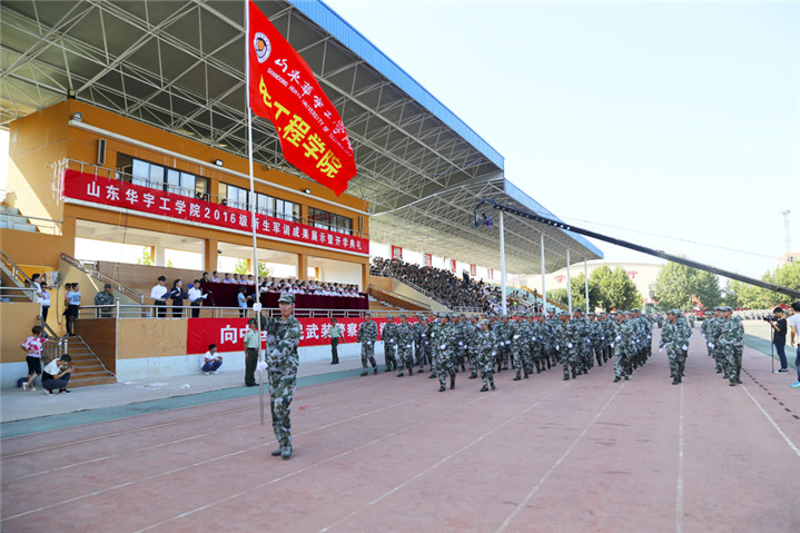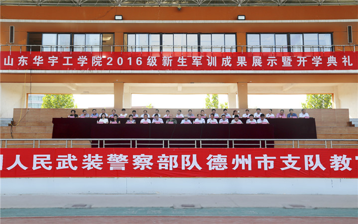 9月7日下午3时,我校2016级新生军训成果展示暨开学典礼在学校体育场隆重举行。中国人民武装警察部队德州支队副参谋长王洪彪,学校名誉校长,原山东工业大学校长、党委书记刘玉柱,山东省委高校工委党建工作联络员、山东省教育厅督导专员李长瑞,学校常务副校长梁玉国,学校党委副书记、副校长高挺进,学校副校长杨义,校长助理杜光荣以及各职能部门和二级学院的主要负责同志出席典礼并在主席台就座。参训武警部队全体教官,学校军训团全体成员,2014级、2015级学生代表参加了大会。副校长夏传波主持典礼仪式。