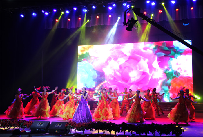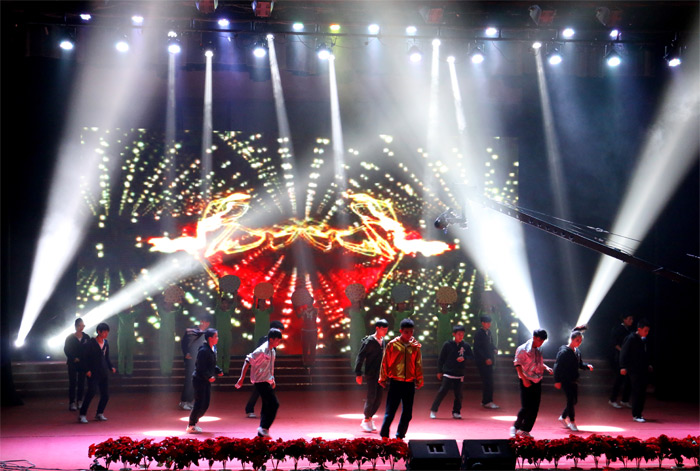 联欢会在欢乐的歌伴舞《喜庆的日子》中拉开帷幕,一曲欢快的《小水果》开启了欢庆元旦的旅程,同学们用优美的舞蹈、欢快的歌声向华宇全体师生送去了新年的祝福!有趣的相声《训徒》,搞笑的对白,跌宕的情节,让观众捧腹大笑;一首首欢庆新年的歌曲串烧烘托出新年的喜庆氛围;学生深情演唱的歌曲《好人好梦》,让全体师生感受到了学生对学院的深情、感恩与祝福;配乐朗诵《华宇最美身影》,通过对师生工作身影的抓拍,再配以同学们的深情演绎,真情诠释,充分体现了爱在校园、爱在华宇的美好和感恩老师、感恩华宇的深情;《我和你》回忆了学院建校以来的成长历程及取得的成绩,表达了华宇学子与母校共成长的深情与感悟;老师们的歌曲串烧《当你老了》、《好运来》、《牧人之歌》、《锁麟囊》展现了华宇教师的别样风采;催人泪下的情景舞蹈《时间都去哪儿了》、《中华好儿孙》等经典歌曲、师生同台表演的拉丁舞、E舞飞扬组合表演的杂技街舞、精彩的鬼步舞表演……这美妙的歌声,张扬的舞步,绝美的舞姿将联欢会一次次推向高潮。每个精彩的表演,每个努力的付出,都体现了华宇学子对华宇校园的热爱与感恩。他们用深情、灵动和青春诠释了这次联欢会“收获感恩,温暖前行”的主题。