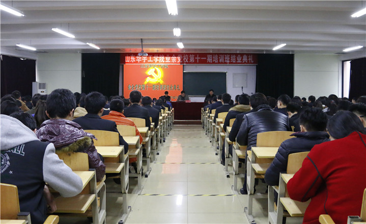 2015年12月31日,我院第十一期业余党校培训班结业典礼在14号楼101室举行。学院党委副书记、业余党校校长高挺进、学院党委委员、人力资源处处长张帆、学院党委委员刘兖锋等领导出席典礼并在主席台就座。典礼由学院党委委员张帆主持,学院各党支部书记、全体结业学员参加了典礼。