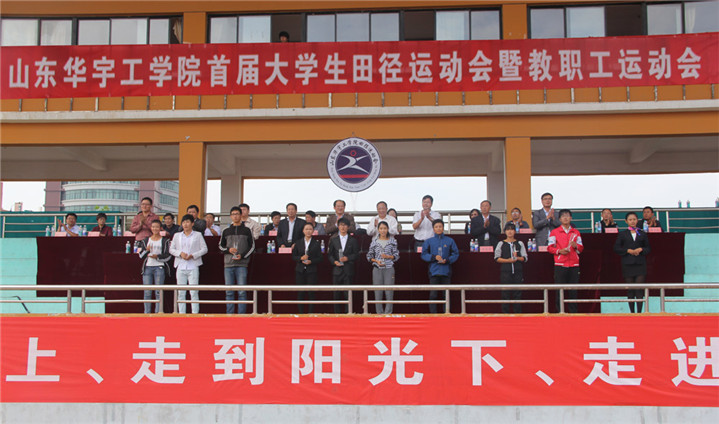 学院领导现场为计算机系等21个获得首届大学生田径运动会暨教职工运动会先进集体和优胜团体颁奖。