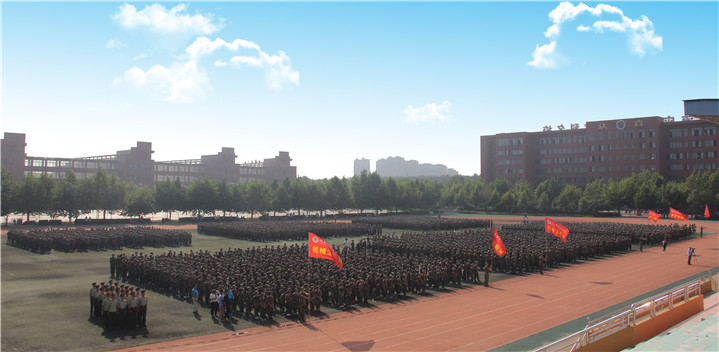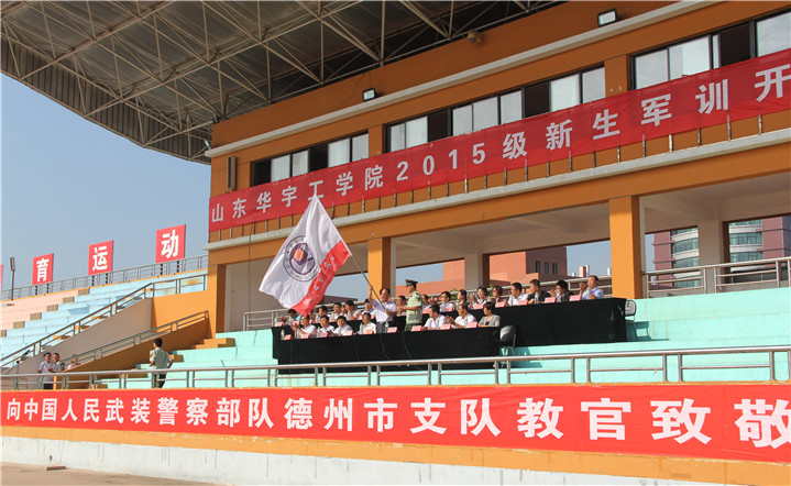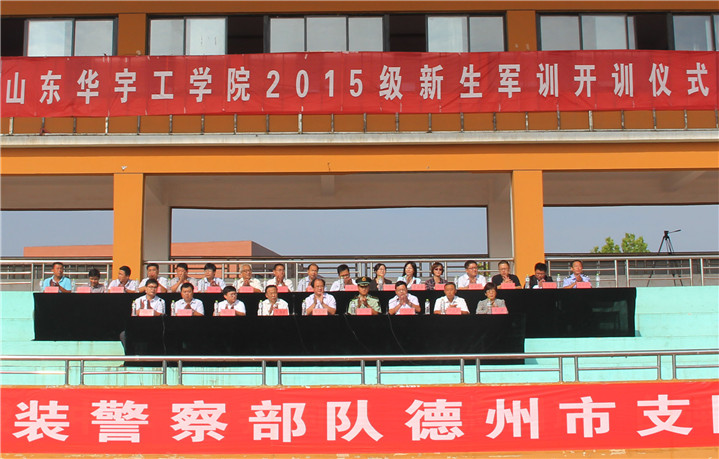 2015年9月6日上午九时,我院2015级大学新生军训开训仪式在学院体育场隆重举行。武警部队德州支队大队长王儒,学院常务副院长梁玉国,副院长夏传波、杨义,院长助理杜光荣以及各系部处室主要负责同志出席开训仪式并在主席台就坐,4300余名大学新生参加了仪式。开训仪式由党委副书记、副院长高挺进主持。