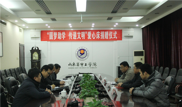 12月25日上午,我院在1号楼中会议室举行“圆梦助学、传递文明”爱心床捐赠仪式。德州市教育局职成教科白金水副科长、德州市第二职业中专田新国副校长、宁津一中杨治国副校长、德州市慈善总会王旻科长、我院常务副院长梁玉国教授、院长助理杨义、办公室主任张静等领导出席活动。