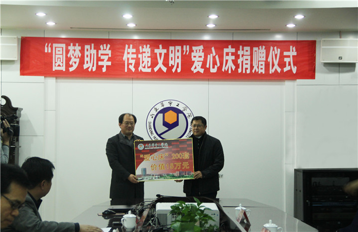 2014年5月18日,我院成功升格为本科高校,成为我市唯一一所工科本科高校。学院升本后,进一步加大投入,积极改善办学条件,提升办学质量。近期,投巨资将学生公寓用床提档升级,改善了学生的学习和生活条件。在改善自身办学条件的同时,学院不忘回馈社会,履行社会责任,学院决定将700余套“爱心床”全部捐赠给德州市第二职业中专、宁津县第一中学和德州慈善学校等有需要的学校,支持德州市教育事业的发展。