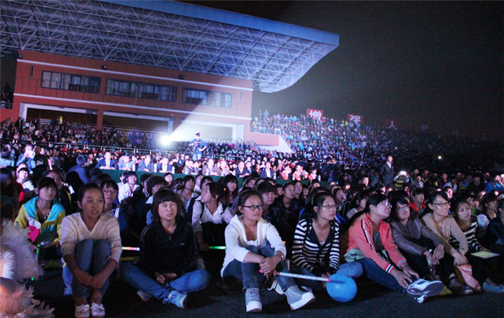 大学梦”迎新生文艺晚会在体育场隆重举行。学院常务副院长梁玉国、副院长朱志平、院长助理张宜经等领导出席并观看晚会。
