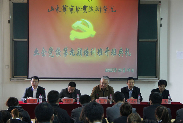 10月19日上午,我院第九期业余党校培训班开学典礼在6号楼104室举行。学院业余党校校长靳大,山东省高校工委党建工作联络员、山东省教育厅教学督导员李长瑞,学院党委纪检委员、院长助理张宜经,学院党委组织委员、人力资源处处长张帆、院团委书记张泽出席典礼仪式,并在主席台就座。学院179名入党积极分子参加了培训班。典礼仪式由学院党委纪检委员、院长助理张宜经主持。