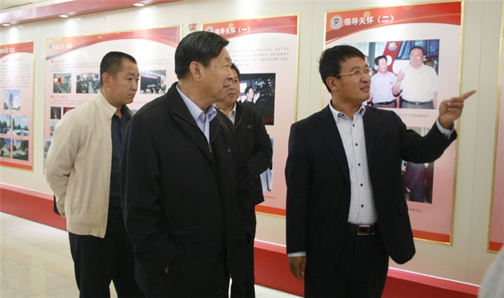 院长董泉增教授陪同评估组专家参观学院展厅