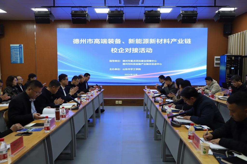 12月12日,德州市高端装备、新能源新材料产业链校企对接活动在我校举行。德州市发改委党组成员、重点项目建设保障中心党支部书记张培辉,德州市科技金融产业融合促进中心副主任张勇,陵城区科技局局长李文亮出席活动,20家链主企业和关键企业代表,学校副校长魏东坡、侯建昌,校长助理雷海峰,有关部门、学院负责人参加了对接活动。