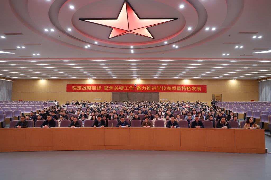梁玉国作了题为《锚定战略目标 聚焦关键工作 奋力推进学校高质量特色发展》的工作报告。他指出,2024年是学校实施“十四五”规划的攻坚之年,也是学校进入高质量发展新阶段的第一年。这一年,学校以习近平新时代中国特色社会主义思想为指导,全面贯彻党的二十大和二十届二中、三中全会精神、全国全省教育大会精神。全体干部职工紧紧围绕学校战略目标,聚焦关键工作,以崭新的姿态,脚踏实地,坚毅奋斗,构建了学校发展的新格局,开创了学校发展的新局面。 报告从党建引领作用彰显、宣传思想工作成效突出,人才引育成效明显、高水平人才队伍加速形成,学科建设持续推进、科研水平显著提升等六个方面回顾了学校2024年的工作。在充分肯定学校发展成绩的同时,也客观分析了面临的挑战、机遇和对标目标存在的主要问题。