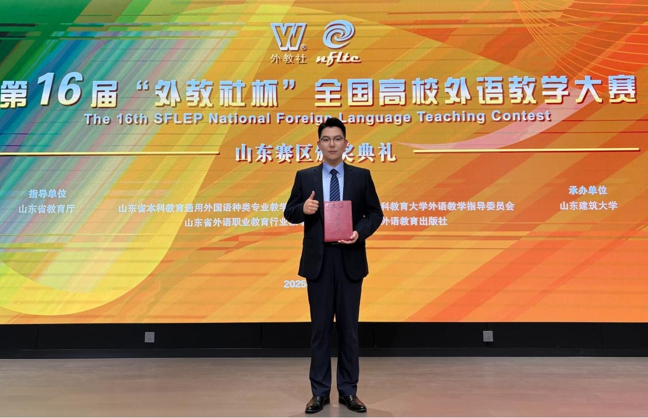 5月25日,第16届“外教社杯”全国高校外语教学大赛山东赛区比赛落下帷幕,我校教师李海军在本科大学英语组比赛中表现优异,斩获山东赛区一等奖。
