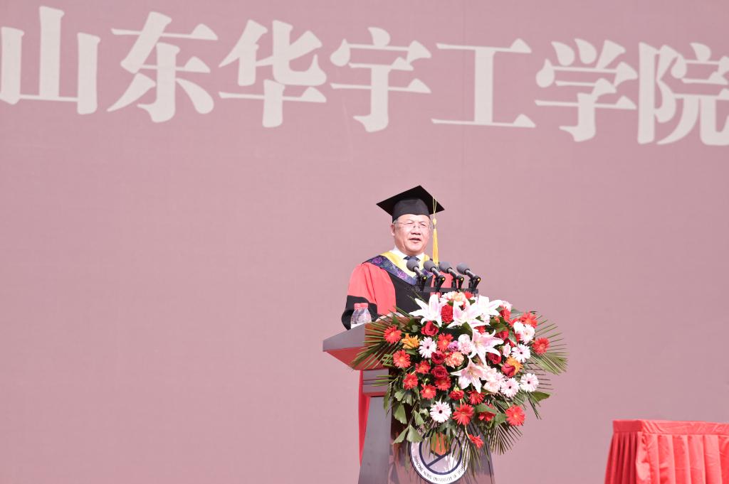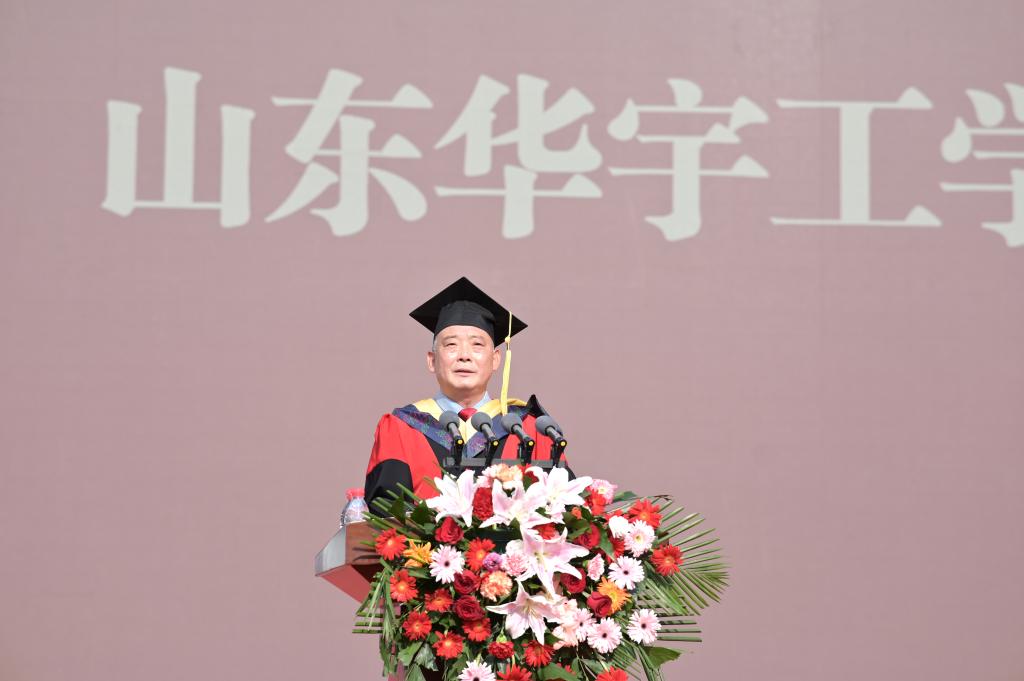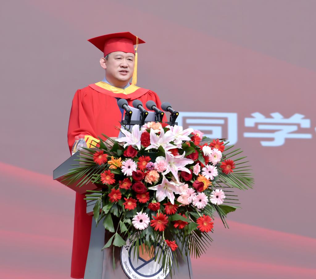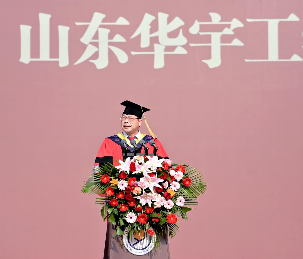 执行校长梁玉国教授以《致高远尽精微,做领域的深耕者》为题发表讲话。他代表学校,向即将开启人生新征程的同学们致以热烈的祝贺和美好的祝福;向一直以来关心、支持和帮助同学们成长成才的老师们、家长们,致以衷心的感谢和崇高的敬意。