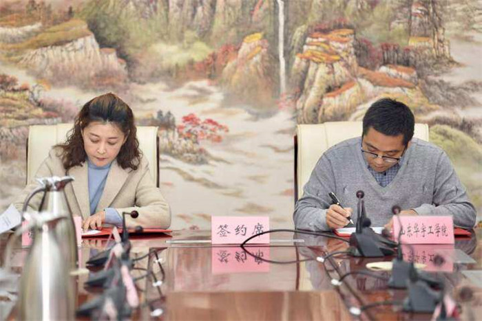 张嵘与刘占凯代表双方签订《共建大学生社会实践基地协议书》,俞鲁海和侯建昌为双方共建社会实践基地揭牌。