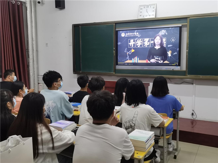 “开学第一课”教育视频包括"四史"学习教育、常态下疫情防控、心理健康安全教育、大学生思想政治教育四个篇章,播放学习了中共中央党校(国家行政学院)辛鸣教授线上教育视频,邀请了德州市疾病预防控制中心专家李敏,学校大学生心理健康教育指导教师王冠和马克思主义学院教师王佳分别讲解了相关内容。