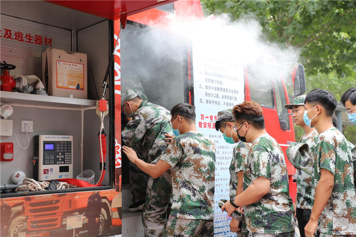 为全面提高2021级新生消防安全意识和自防自救能力,9月16日,学校防火委员会办公室组织全体新生开展“消防知识进军训”活动,邀请德州市消防救援支队防火专家教官张立勇来校,为同学们开展消防应急疏散演练和消防安全知识培训,上好“校园安全第一课”。