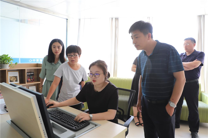 交流会后,乔仁洁一行参观了校史馆、大学生事务中心、“一站式”征兵服务站,重点考察了大学生心理健康教育中心、学生公寓心理辅导站等心理健康教育场所。