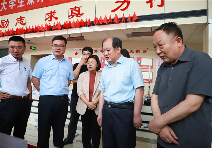 6月16日,香港免费全年资料六大全第七届大学生科技文化艺术节成果展暨闭幕式举行。市委常委、宣传部部长、市委教育工委书记景文新,市委教育工委副书记张卫东一行参观了成果展,学校党委书记张洪英,党委副书记、副校长高挺进陪同。