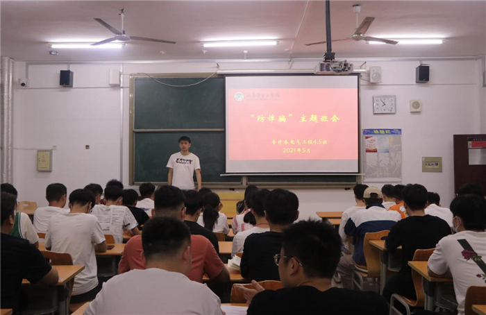5月23日,各二级学院组织召开了防诈骗主题教育班会,从什么是网络诈骗、常见的网络诈骗手段、网络诈骗的危害以及如何防治网络诈骗四个部分展开。辅导员采用案例讲解、播放《以案解骗,深度剖析十大高发骗局》警示教育视频等方法,使同学们认清当前新型诈骗方式,起到了安全警示作用。再次重申“金钟罩”微信程序在防范学生电信网络诈骗中的重要作用,检查落实学生注册情况,避免学生因未注册程序而引发诈骗案件的发生。各学院以班级为单位签订了《不参与电信网络诈骗犯罪承诺书》,引导学生及家长关注“安全学习在线”公众号,组织学生参与防诈骗安全知识答题等活动。同时,通过辅导猫向学生推送防范电信诈骗的知识《记住这十条防诈骗秘籍,捂紧自己的钱包》,多渠道、全方位营造校园防范电信网络诈骗的浓厚氛围。