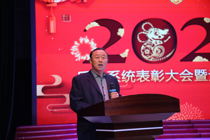 副校长杜光荣在联欢会上致辞。他充分肯定了后勤系统过去一年的成绩,并向后勤员工致以诚挚的祝愿和美好的新年祝福。