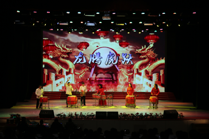 联欢会在欢快的民族鼓乐《龙腾虎跃》中拉开序幕,京剧、相声、歌曲联唱,整场联欢会节目精彩纷呈,高潮迭起。会上,学校对先进集体和个人进行了表彰。
