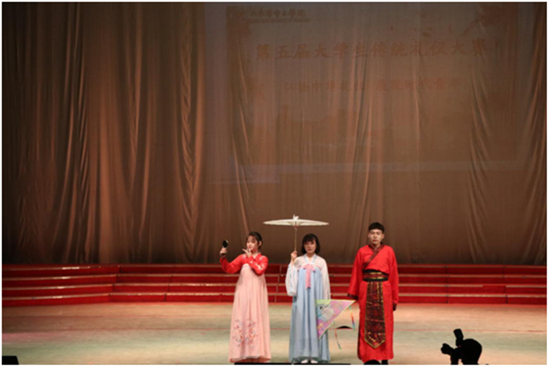 展传统礼仪,扬时代新风。4月24日晚,我校第五届大学生传统礼仪大赛在国际文化中心隆重举行,学生工作处、校团委负责同志、各二级学院辅导员及学生代表1000余人观看了比赛。