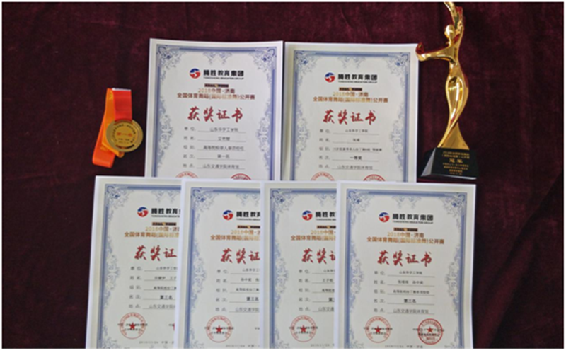 本次大赛由中国关心下一代工作委员会健康体育发展中心青艺办指导,中国济南全国体育舞蹈(国际标准舞)公开赛组委会举办。在高手如云的比赛现场,我校学生不畏强手,奋力拼搏,以扎实的基本功和优美的舞姿征服了评审和观众,艾艳慧同学获得高等院校单人单项恰恰第一名,张瑶获得16岁组新秀单人B组一等奖(等级赛),王子明、田建伊获高等院校拉丁B组第三名,孙中奕,张靖雨获得高等院校拉丁单项恰恰第三名,史秋雨获得高等院校拉丁单项伦巴第五名的好成绩。这是我校大学生艺术团拉丁队继CBDF中国杯国际标准舞巡回赛后获得的又一优异成绩。