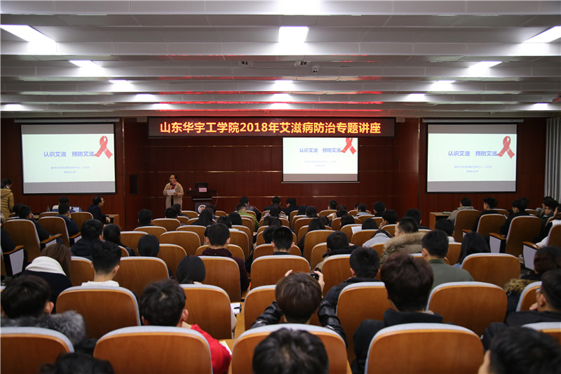 2018年12月1日是第31个“世界艾滋病日”,为全面贯彻落实《山东省教育厅办公室转发< 教育部办公厅关于做好2018年“世界艾滋病日”宣传活动的通知>的通知》精神,进一步提高学校艾滋病防控工作水平。11月27日下午16:30,我校在14号楼101学术报告厅开展2018年艾滋病防治专题讲座,学生工作处全体人员、全体辅导员以及学生代表参加了讲座,讲座由学生工作处处长助理栗新燕主持。
